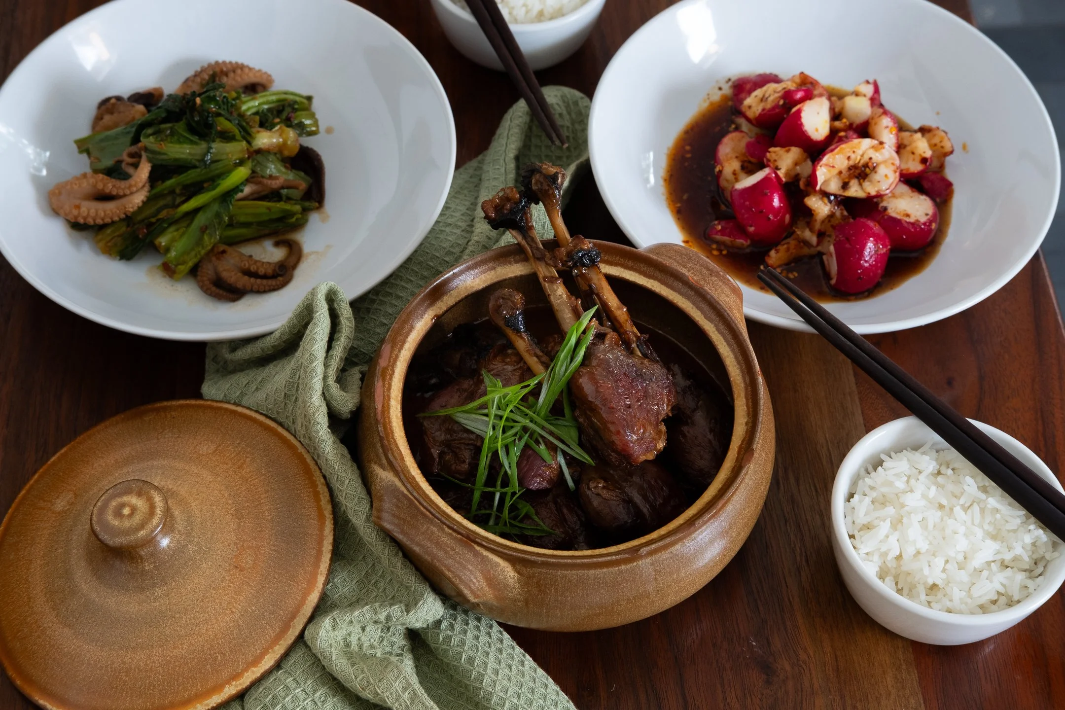 This is another Fuschia Dunlop adaptation, we’re both obsessed. Variations of this dish can be found in The Food of Sichuan and Every Grain of Rice. I’ve made this dish with pork, beef, tendon, venison, and goose. All of them are delicious. The sticky, rich, sweetness of the dish is easy to love, and easy to make.