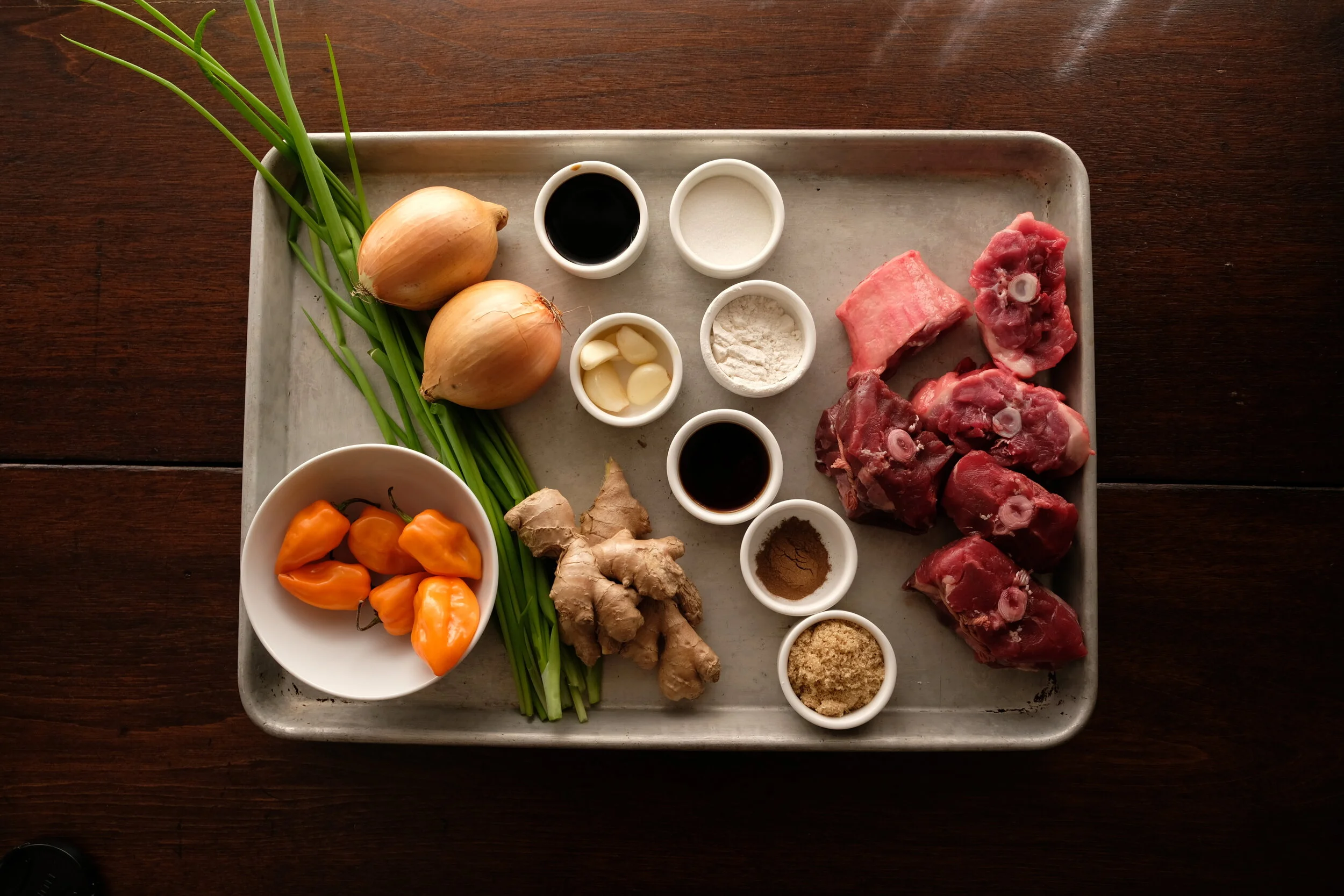 12/30: Shrimp, snakehead & cobia curry, yu choy, rice, pear tart with venison tallow crust